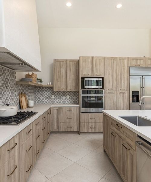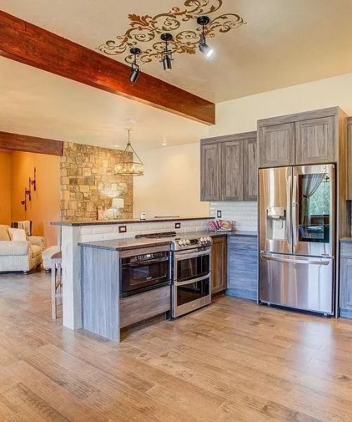 The shaker cabinet door style is constructed in 5 pieces in either of our Arizona or Colorado cabinet shops. The 2 stiles (which run up and down) and the 2 rails (which run horizontally) fit snuggly around a flat recessed panel in the center. The shaker door is the most trending and popular door style on the market, but it is not new on the scene as this hot item has been a timeless design. The somewhat simple design of the shaker door gives some depth to your cabinetry while not being over powering or as commonly stated, with more ornate doors, “busy”. This door style is provided in a variety of colors including cherry, black, white, and more shaker cabinets to bring your home to life. The shaker cabinet will be found in more classic and rustic settings as well as incorporated into more modern applications without missing a beat.